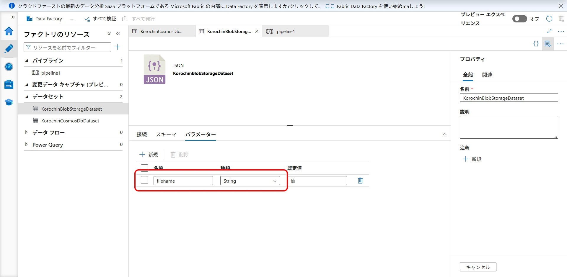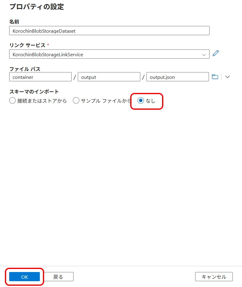Similar to Cosmos DB, create a Blob Storage dataset.
