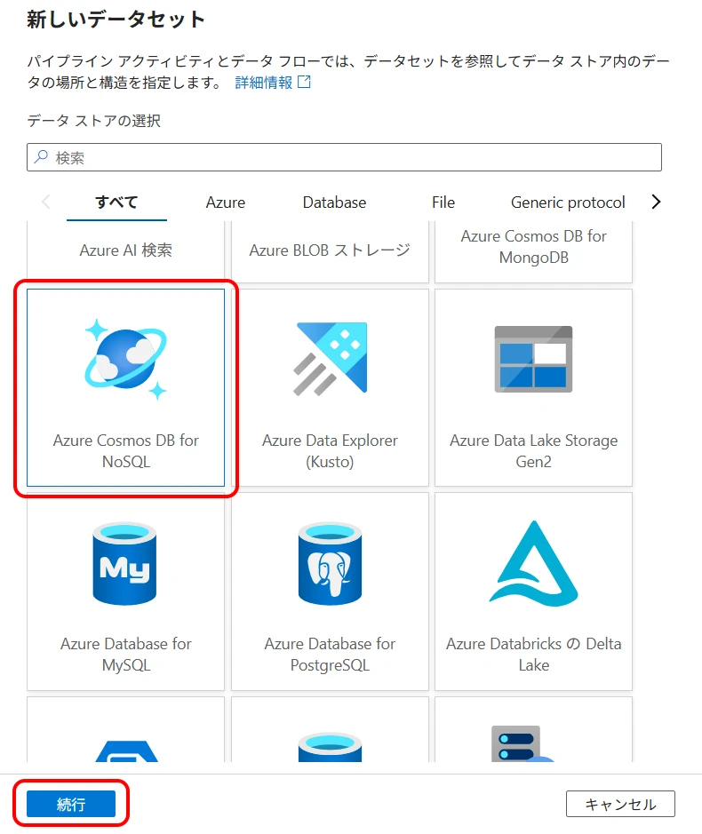 Next, create a Cosmos DB dataset.