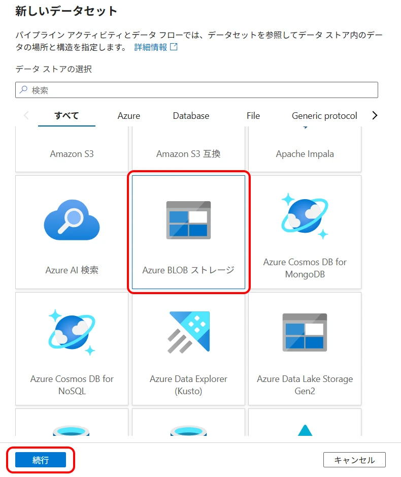 > select "Azure Blob Storage" and click "Continue" (Figure 14).