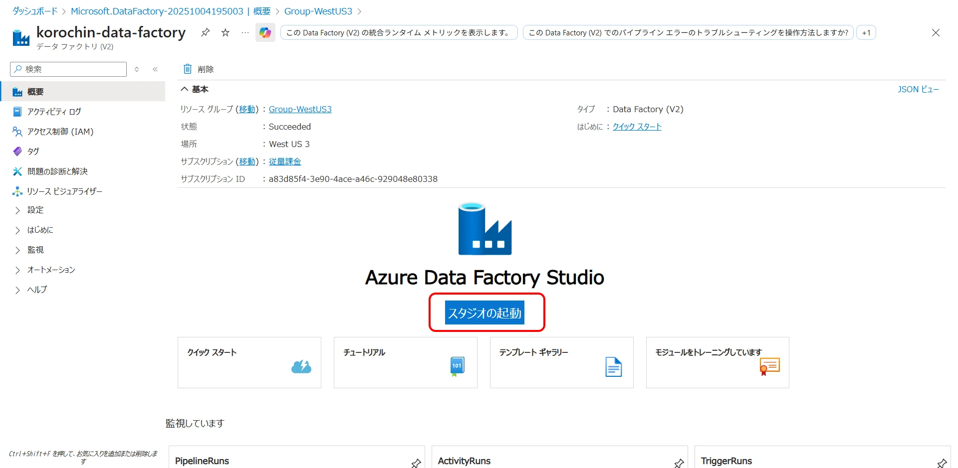 From the created data factory, click "Launch studio" (Figure 5).