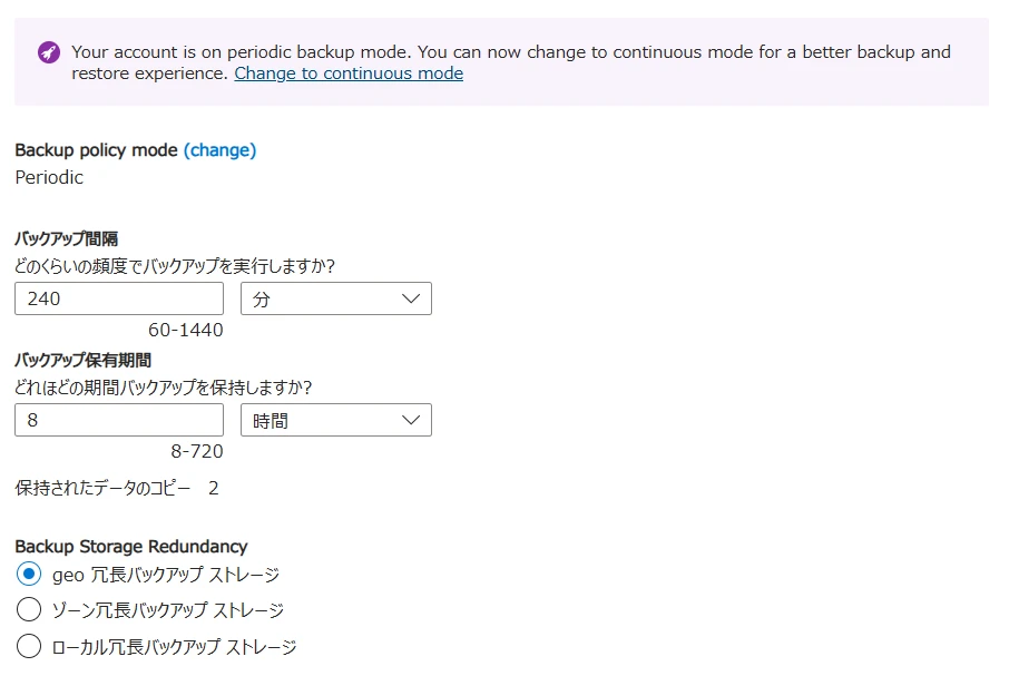 Cosmos DB has two backup policy modes: