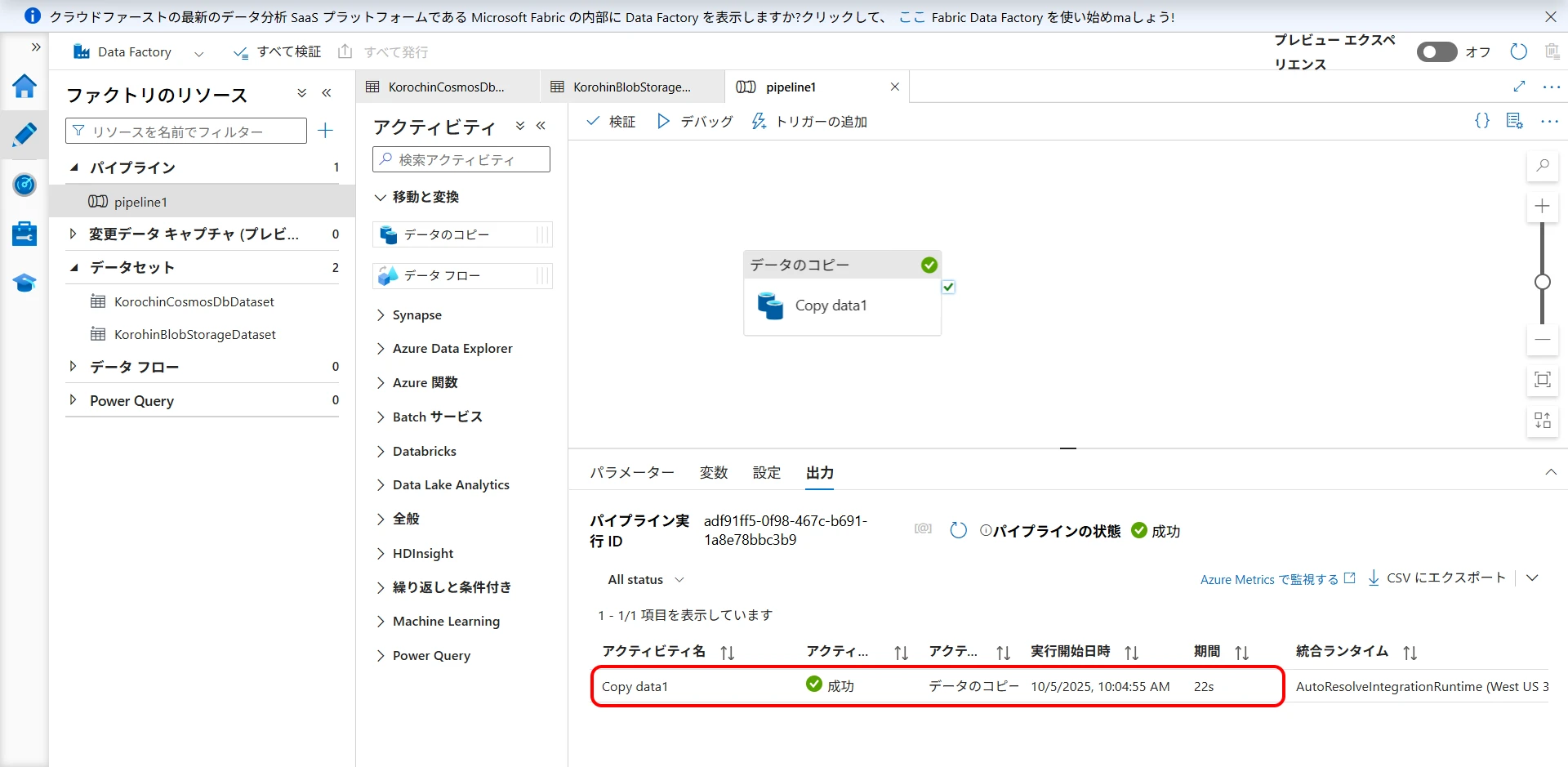 - Create and execute a pipeline (copy activity)