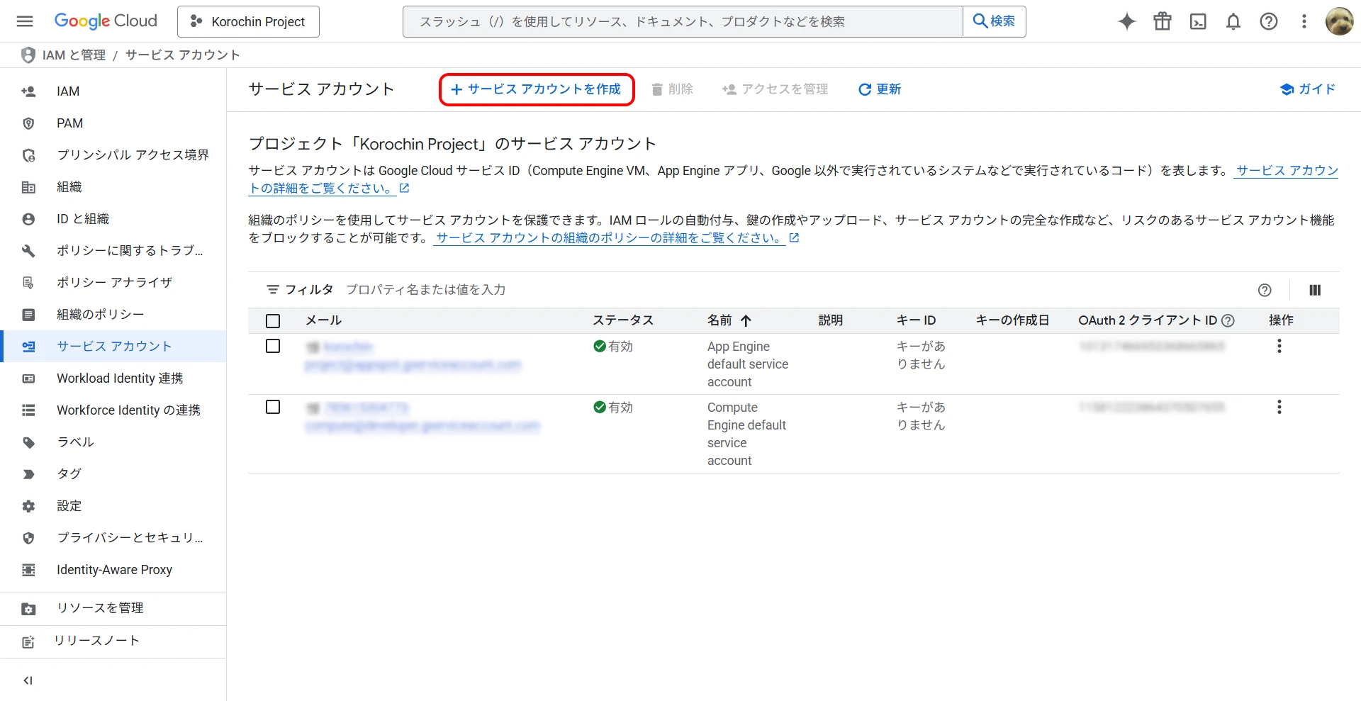 Click "Create Service Account", enter an account name, and create it. No additional permissions are required.