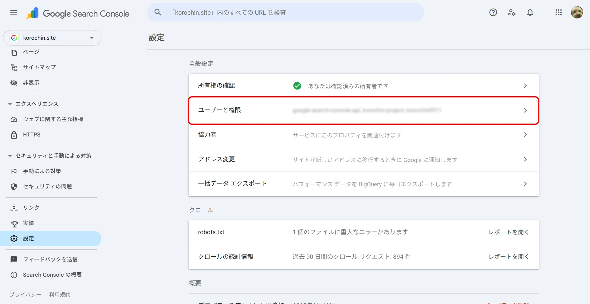 Next, access Google Search Console and configure the service account created in "2. Create a Service Account".