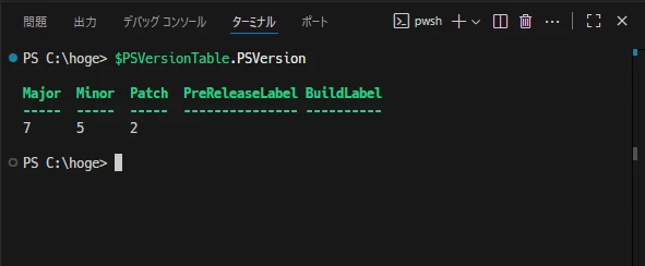 PS /mnt/c/hoge> $PSVersionTable.PSVersion