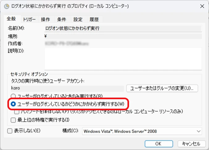 2Select "Run whether user is logged on or not"